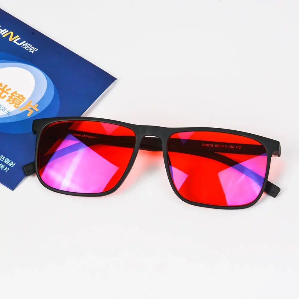 Exklusiva röda linser glasögon – för bättre sömn och återhämtning!